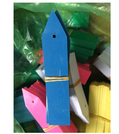 Ví dụ: Vườn hoa mình có nhiều cây lan đột biến bông trằng, những chậu hoa lan mà mình rất thích. nhưng nếu không ghi chú thì khi hoa tàn sẽ không biết chính xác là cây nào Làm bằng nhựa màu trắng, dài 11cm, rộng 2cm, một đầu đục lỗ dùng để móc treo, phần còn lại dùng để ghi chú tên.